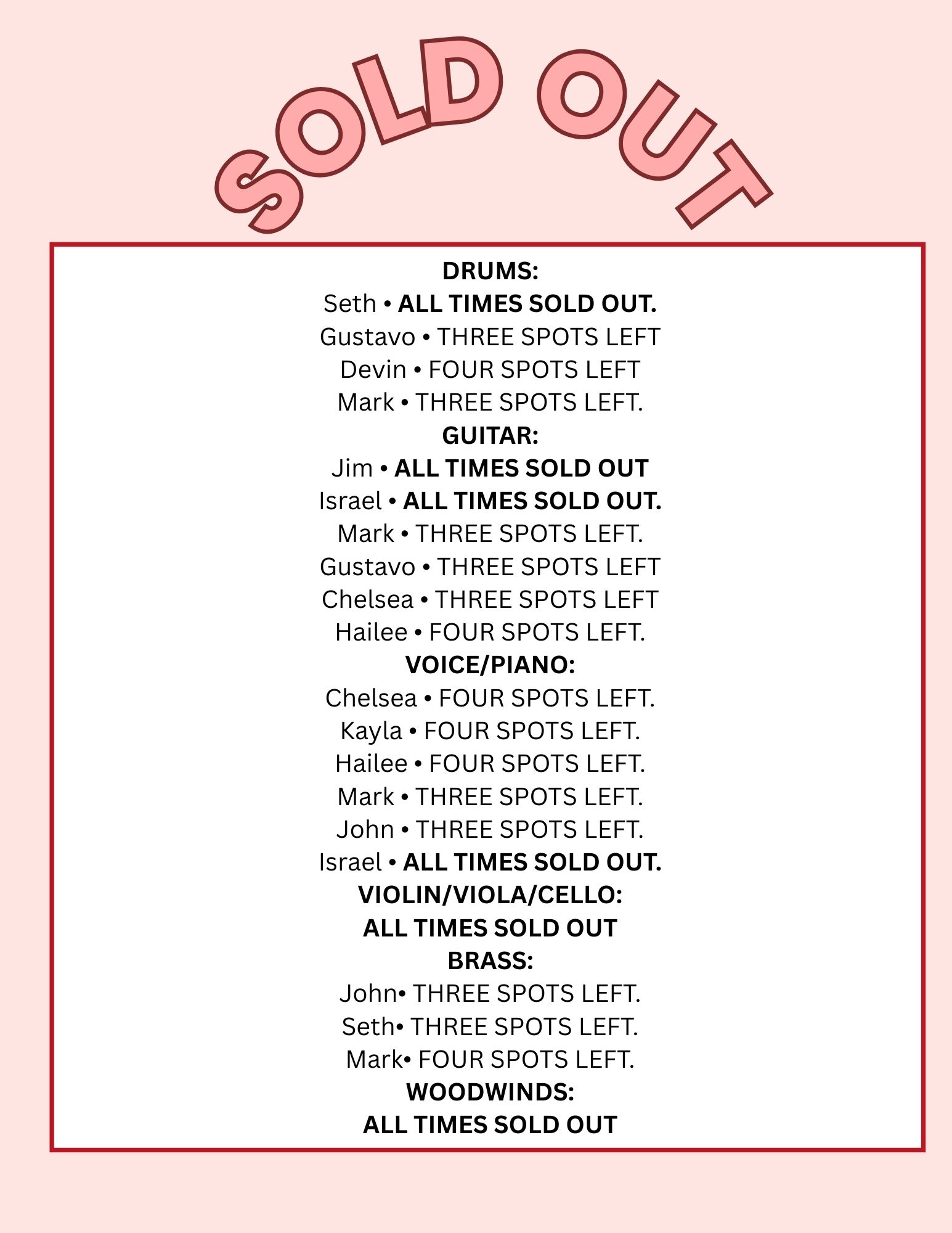 Lessons are first come, first serve